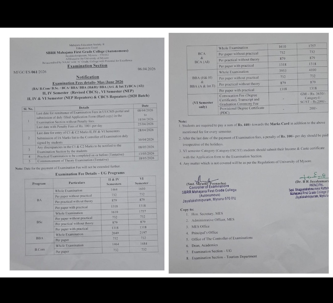 May/June 2026 Examination Notification: Click Here